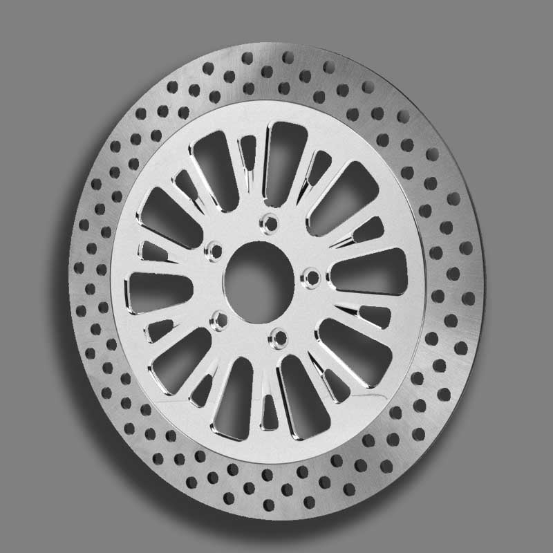 Innovative Cog Drive Rotors From HHI / Renegade Wheels like the Cobra come in Universal and Matching Wheel Designs in 11.5, 11.8, 13 & 18 inch sizes. Delivered in standard Chrome, Black or Phantom Cut finishes, with custom ordered colors of Aztec Red, Cobalt Blue, Inca Gold & Blaze Red available.