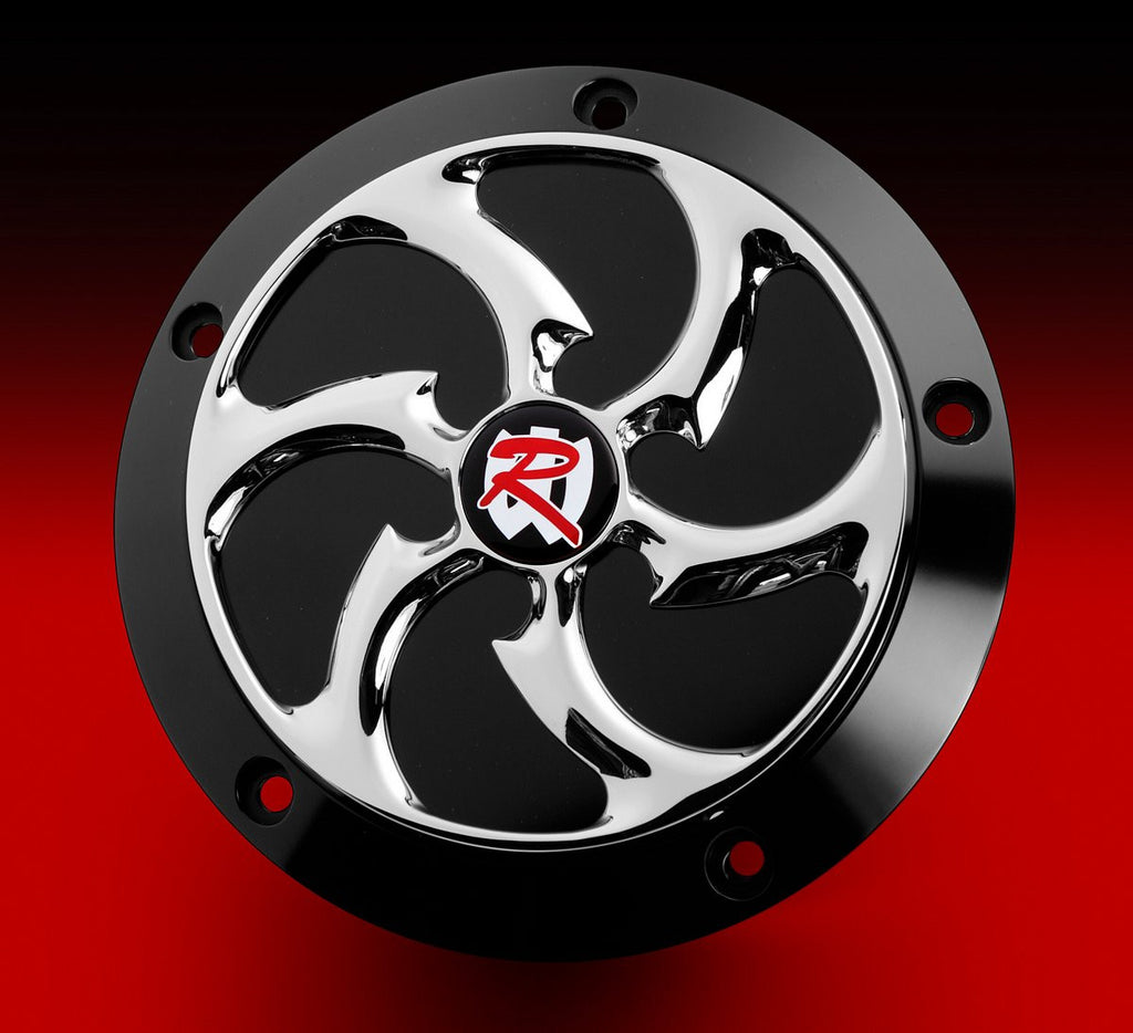The Derby Base is available in Show Chrome or Phantom Black Anodized, and the Derby Cover is offered in matching Renegade Wheels designs in both chrome and Phantom-Cut.