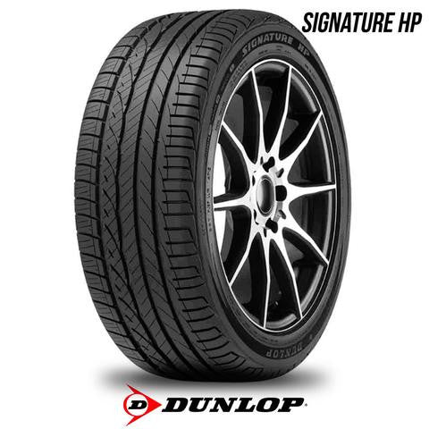 Dunlop Signature HP tires mold a high-performance all-season compound into an asymmetric tread design. Their broad outboard shoulder blocks are backed by intermediate and center ribs designed to enhance steering response and cornering stability. The tire's inboard intermediate rib and shoulder feature independent tread blocks that pump water to help resist hydroplaning and enhance wet weather traction. An innovative blade pattern increases the number of biting edges to offer long-lasting traction and enhance turning in snow and on ice.